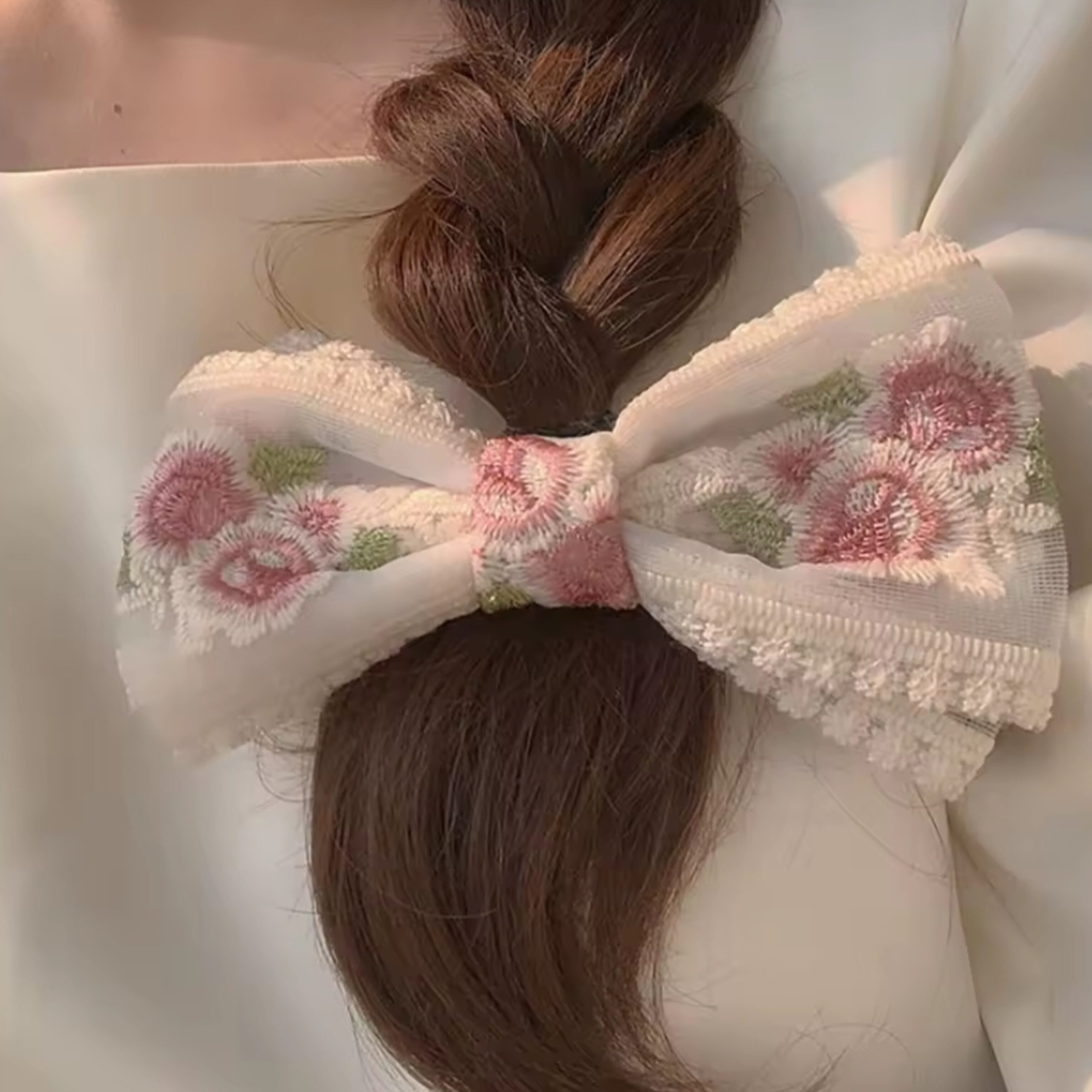 گیره فرانسوی پاپیون تور شیری (گل دار)