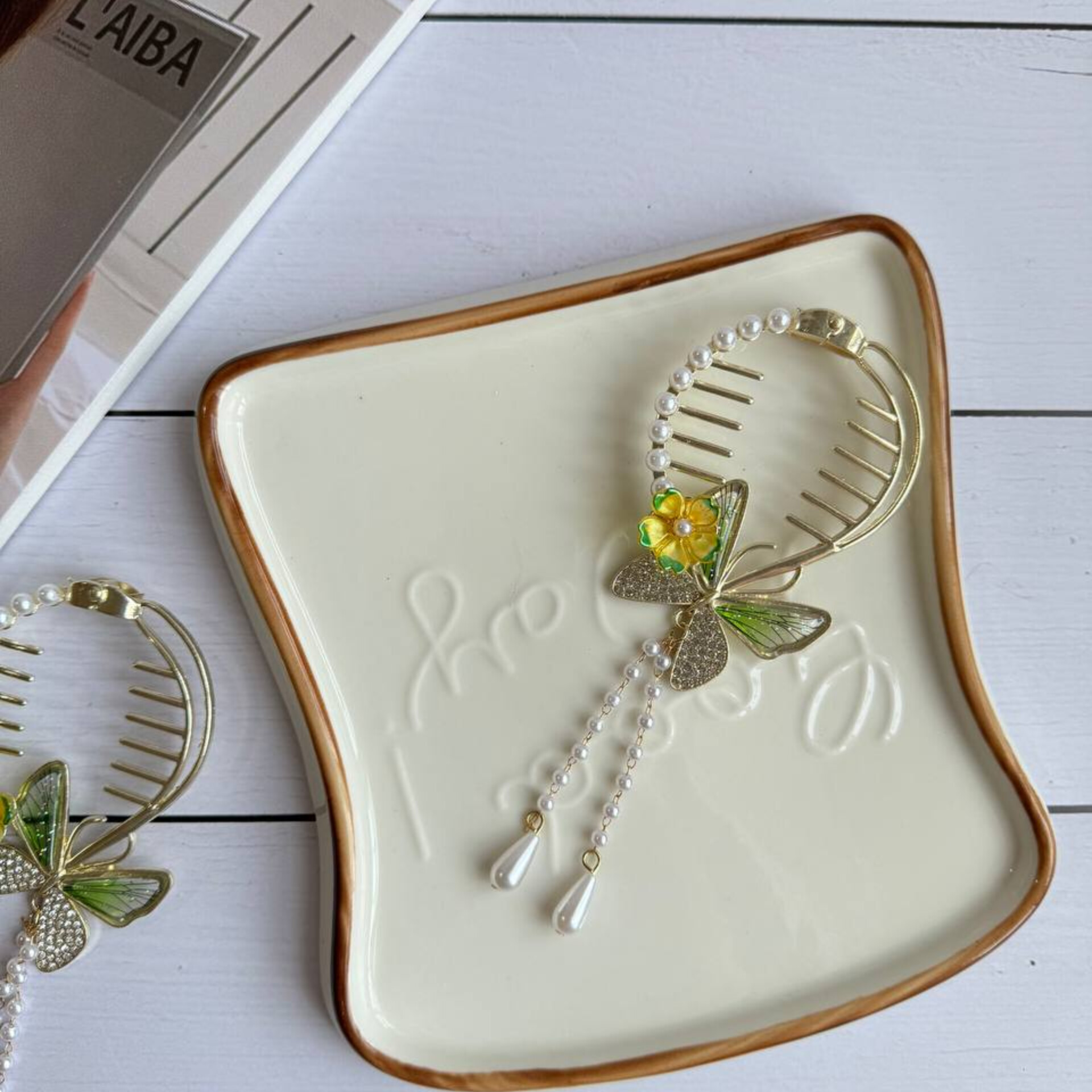 گیره سامورایی(دم اسبی) پروانه و گل بنفش فنگی